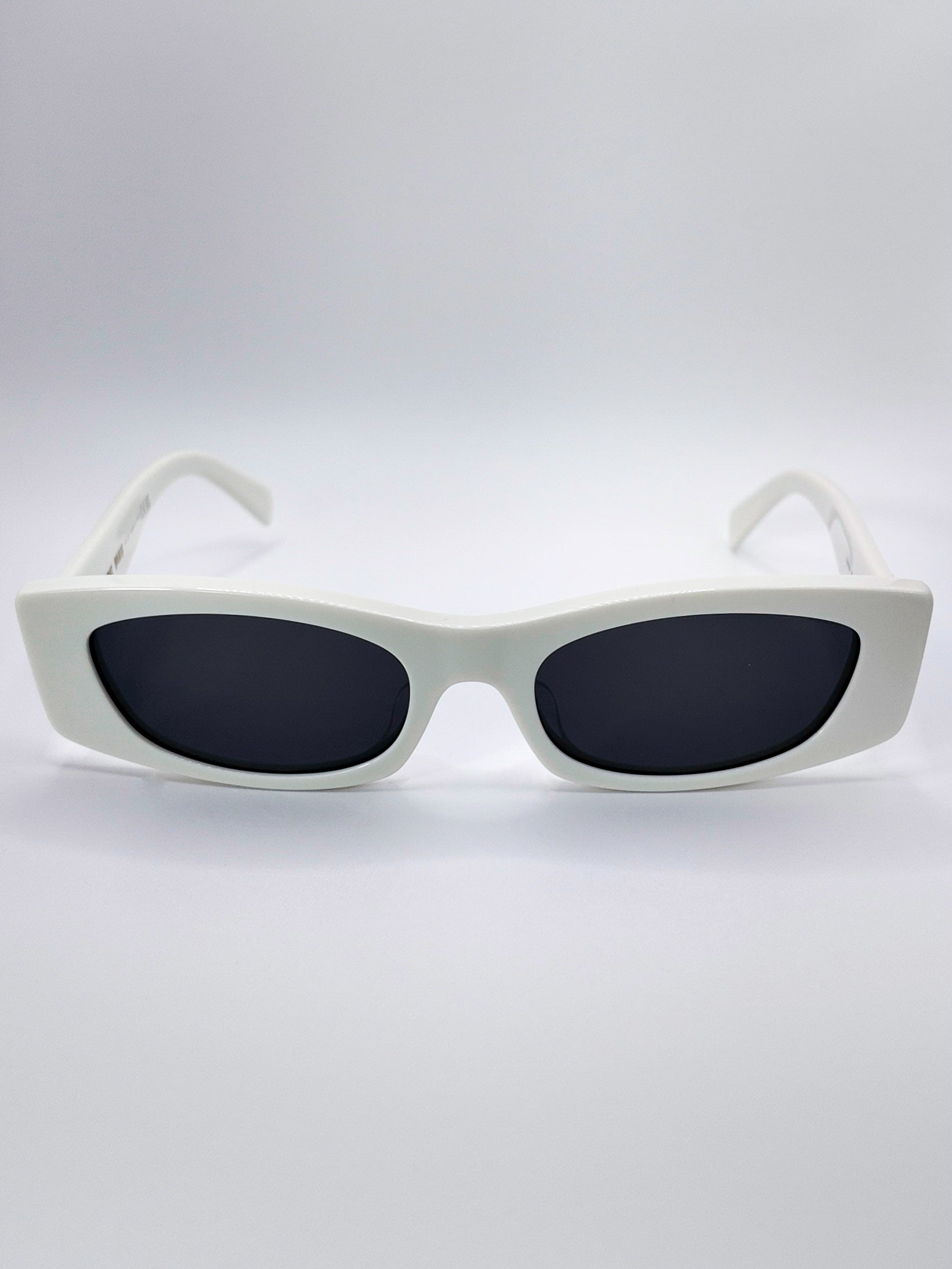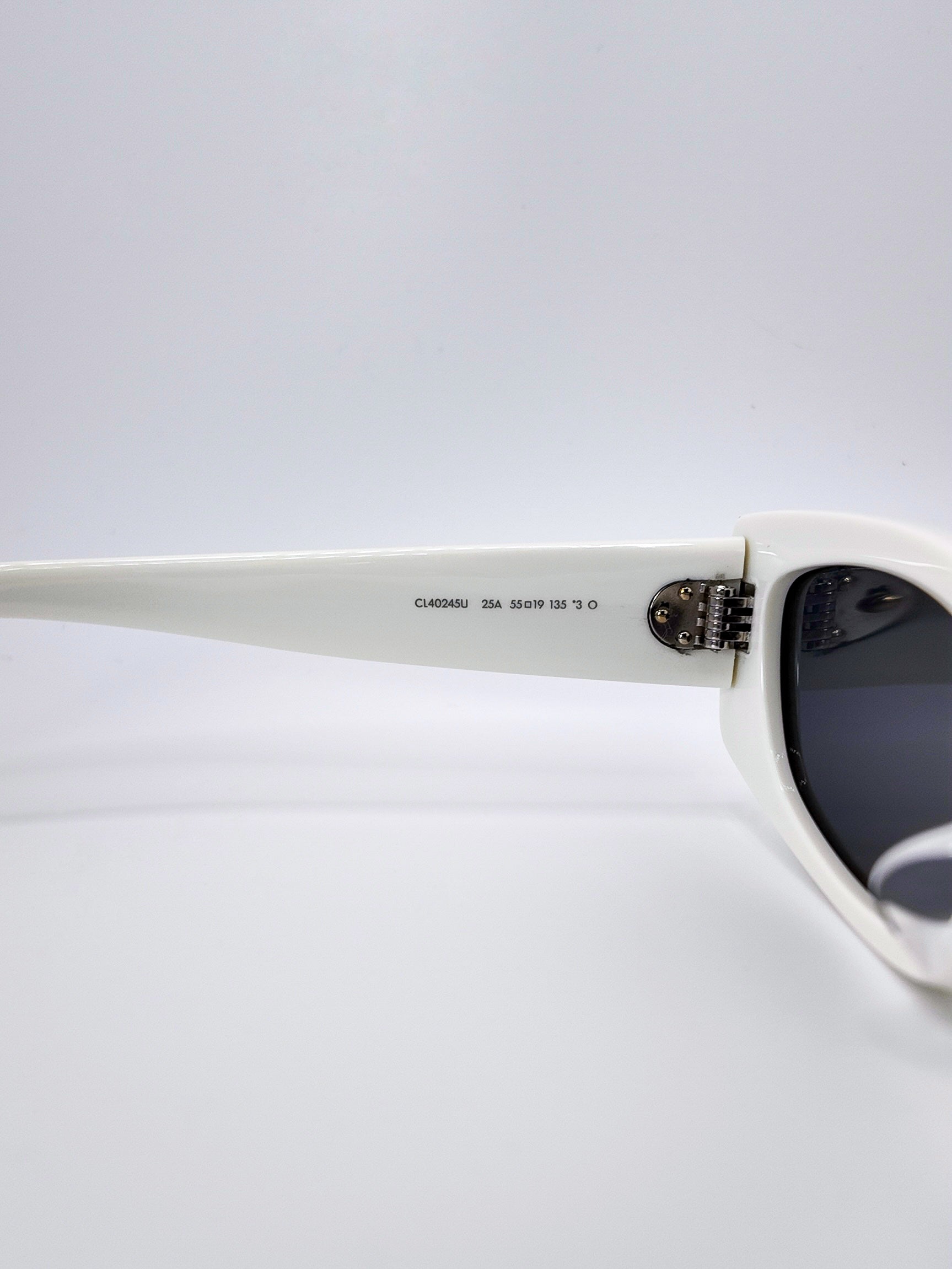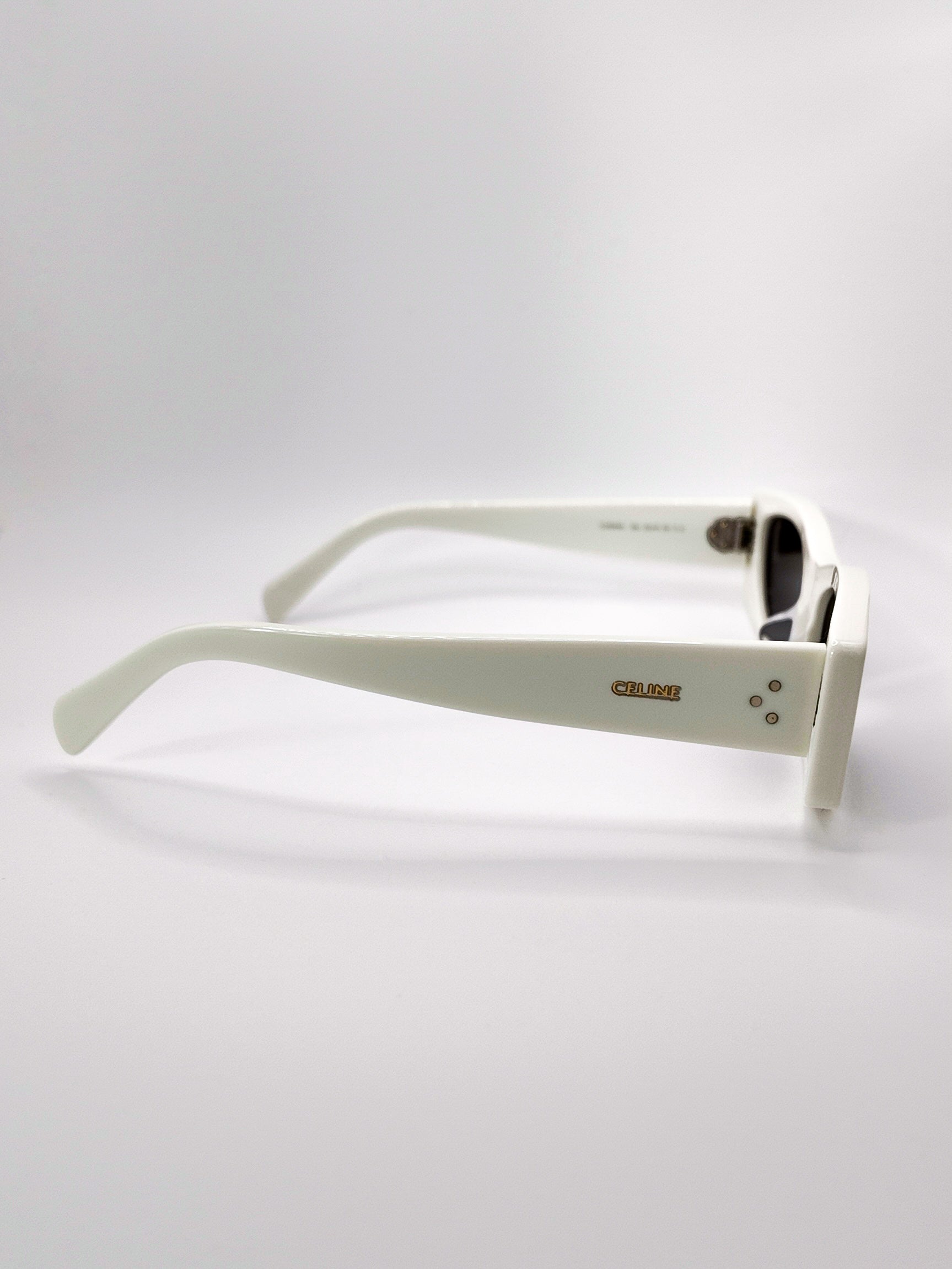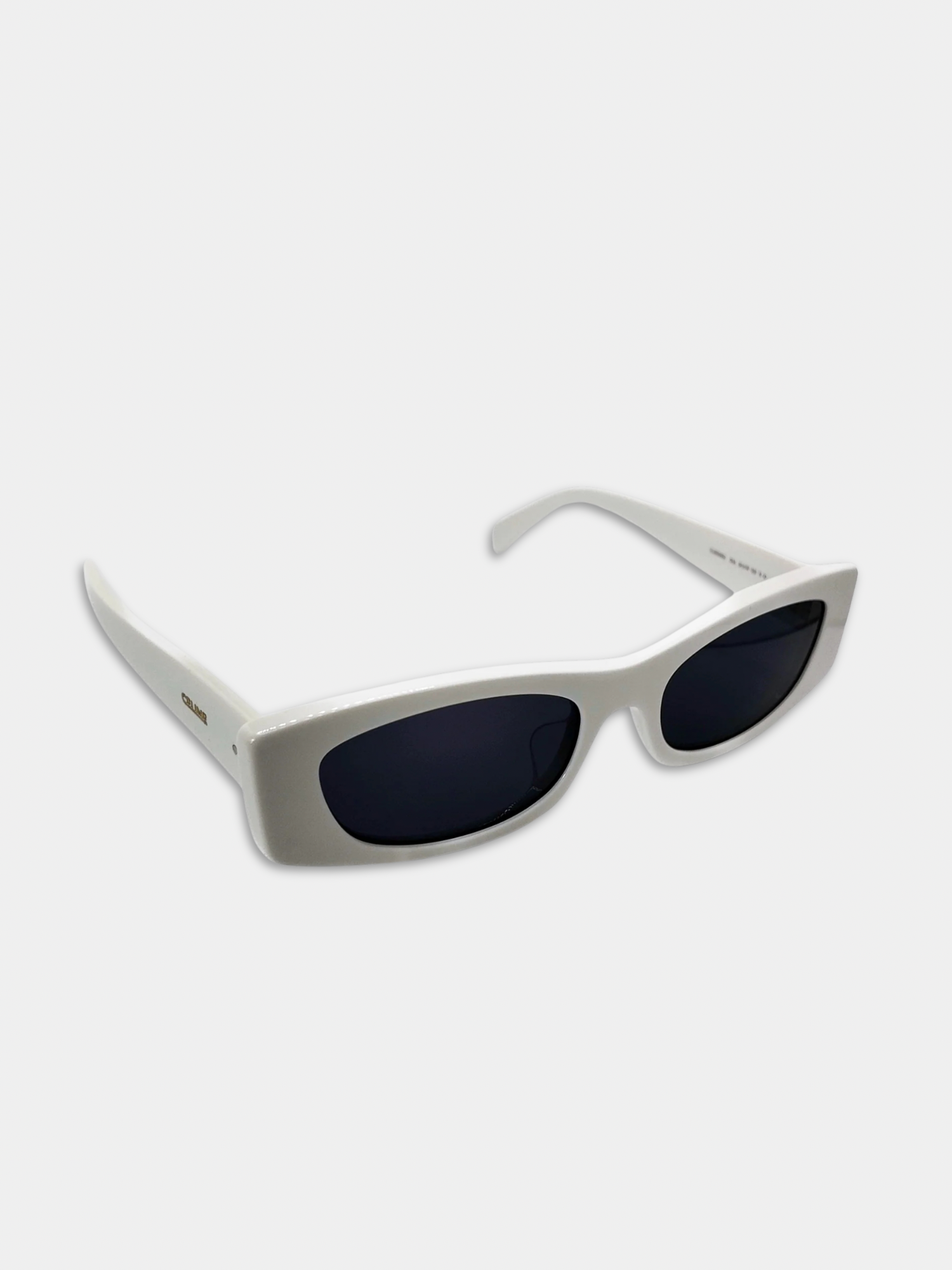 The Celine Graphic S258 Sunglasses deliver bold modernity with a sleek rectangular silhouette in glossy white acetate. Featuring dark lenses and wide temples stamped with the gold Celine logo, they embody the house’s minimal yet statement-driven aesthetic. Effortlessly balancing sharp lines with everyday wearability, this design is a standout in contemporary eyewear. Brand new, this pair comes complete with its box and case.