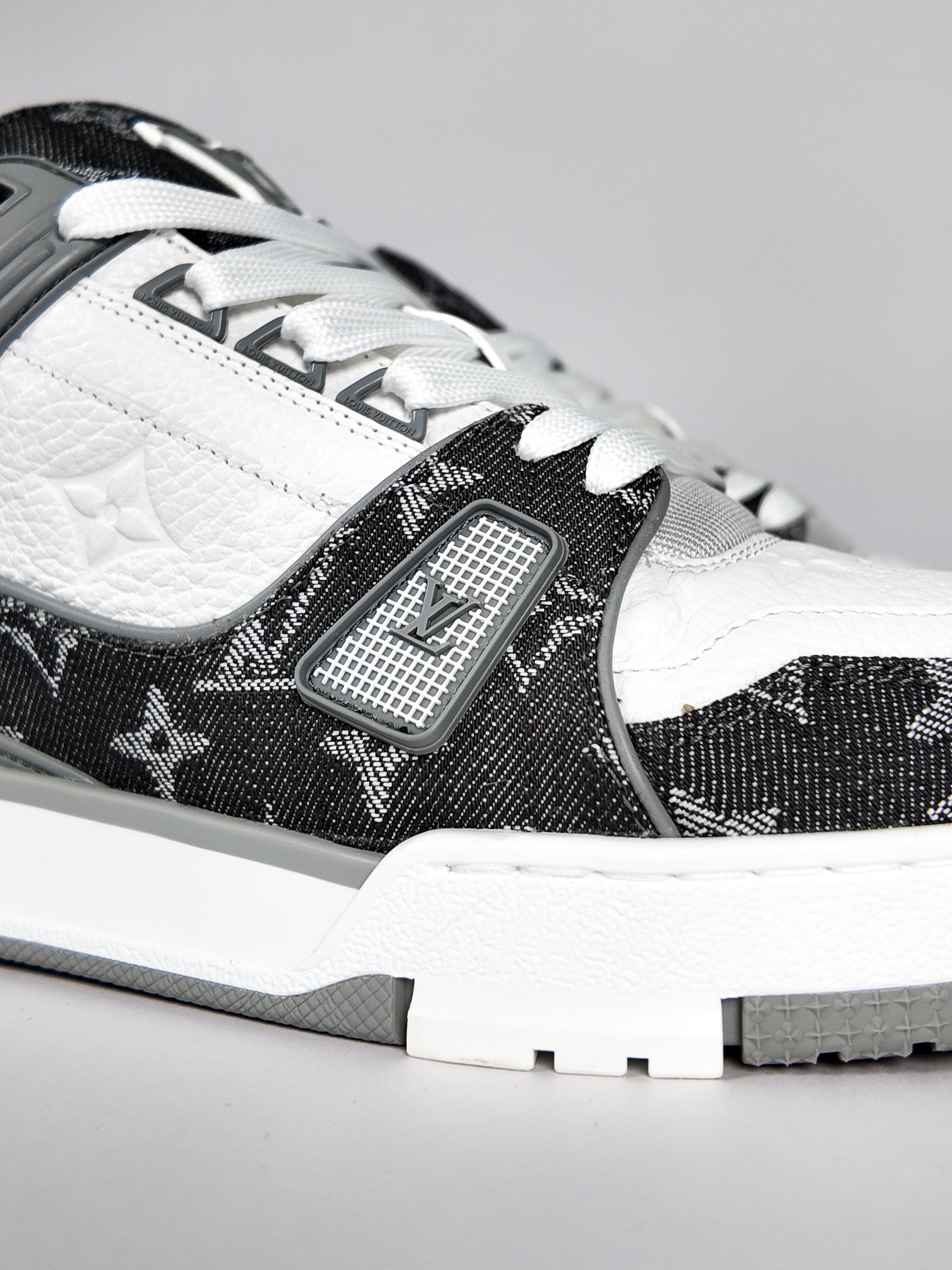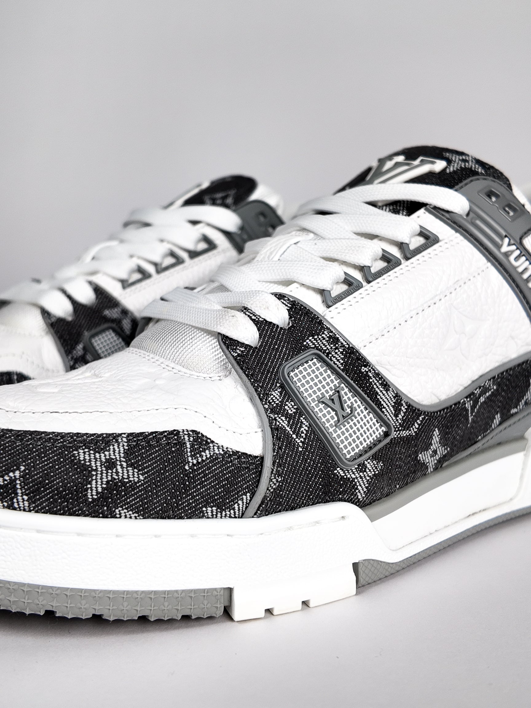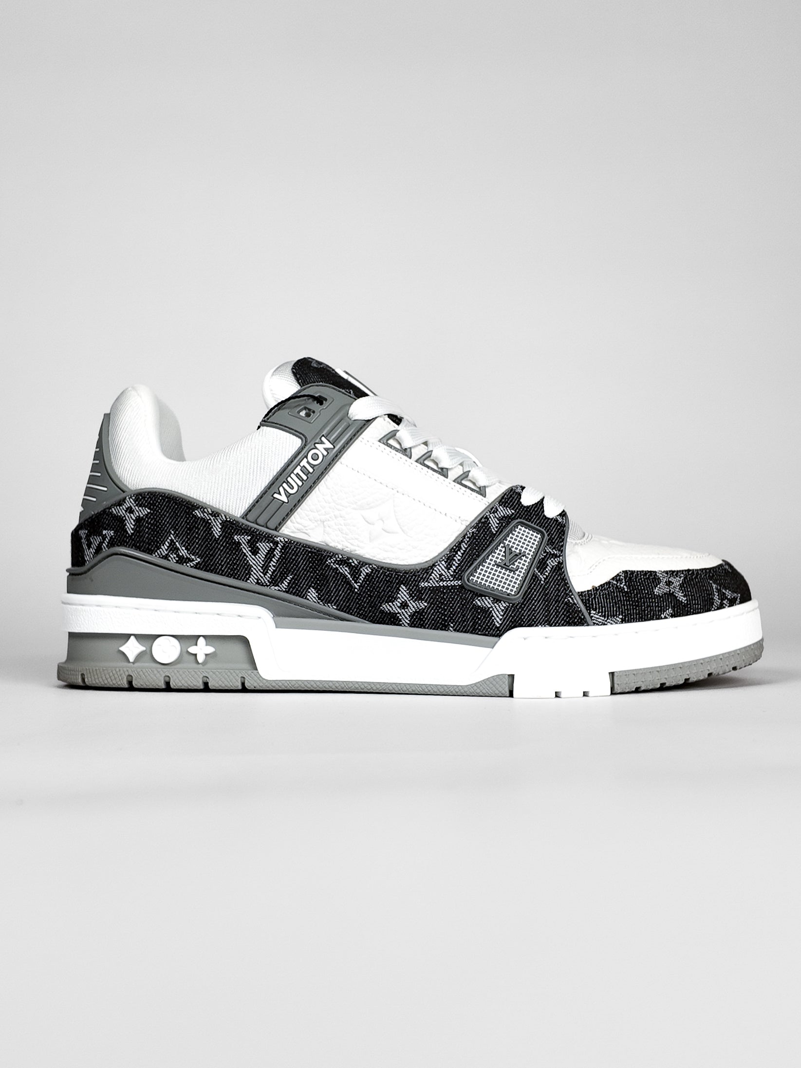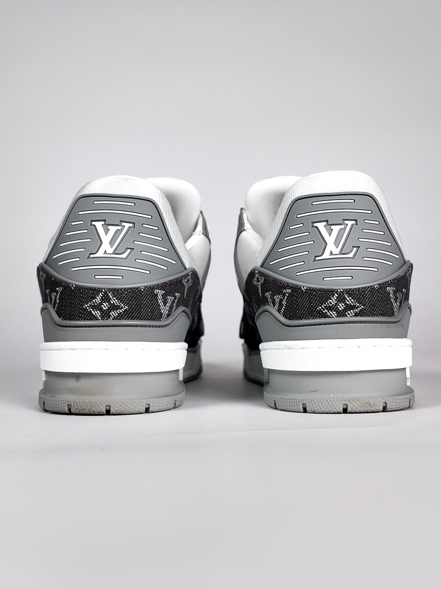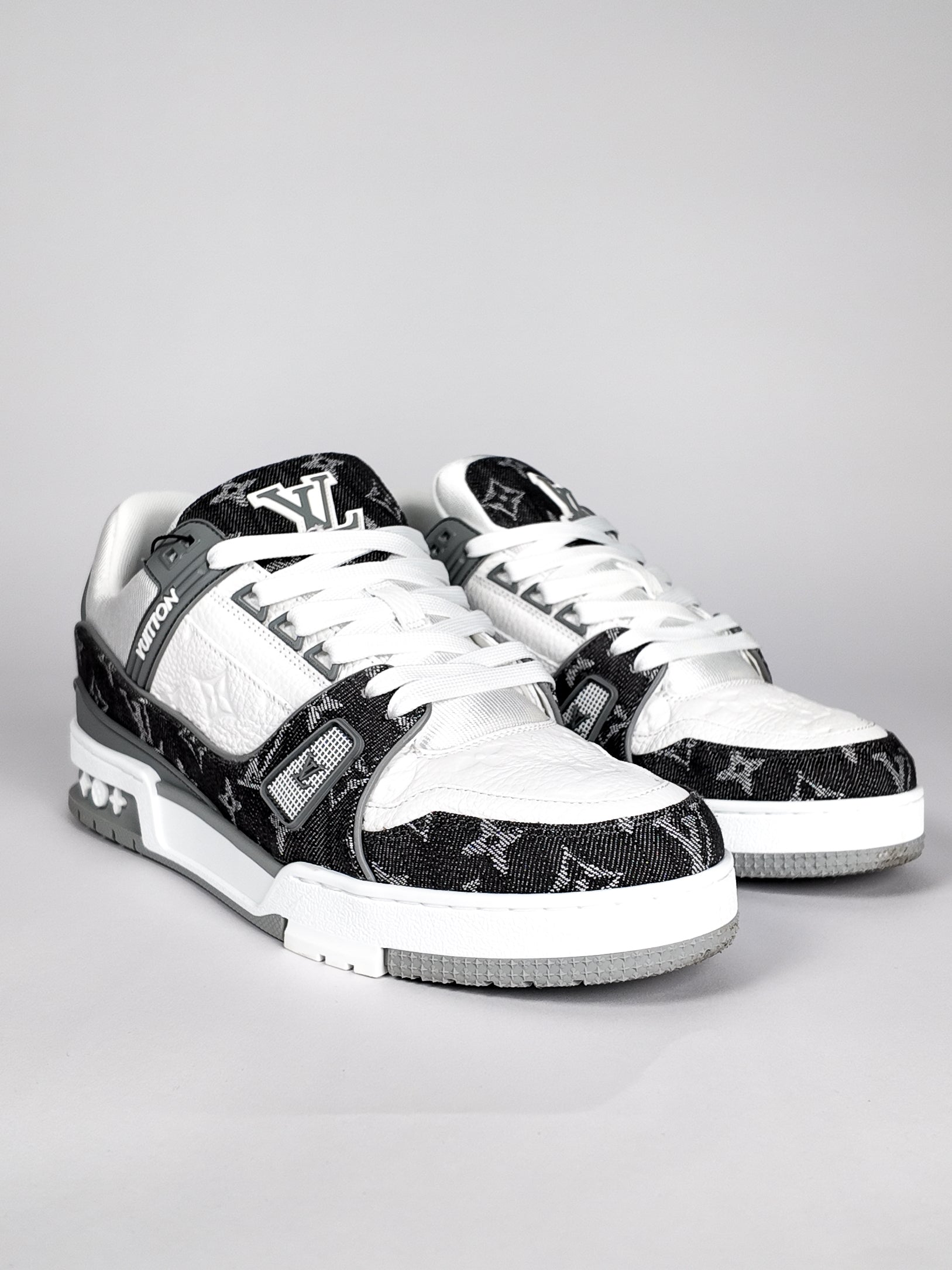 Designed by Virgil Abloh, the Louis Vuitton LV Trainer reimagines a classic basketball silhouette through the house’s luxury lens. Crafted from monogram denim and smooth calf leather, this pair combines statement detailing with superior craftsmanship. Pre-loved and in excellent condition. Comes with box and dust bag. Note: these fit large — we recommend sizing down.