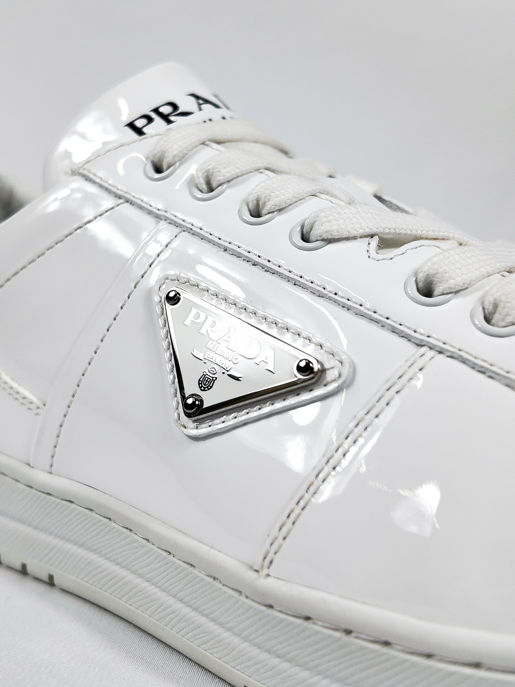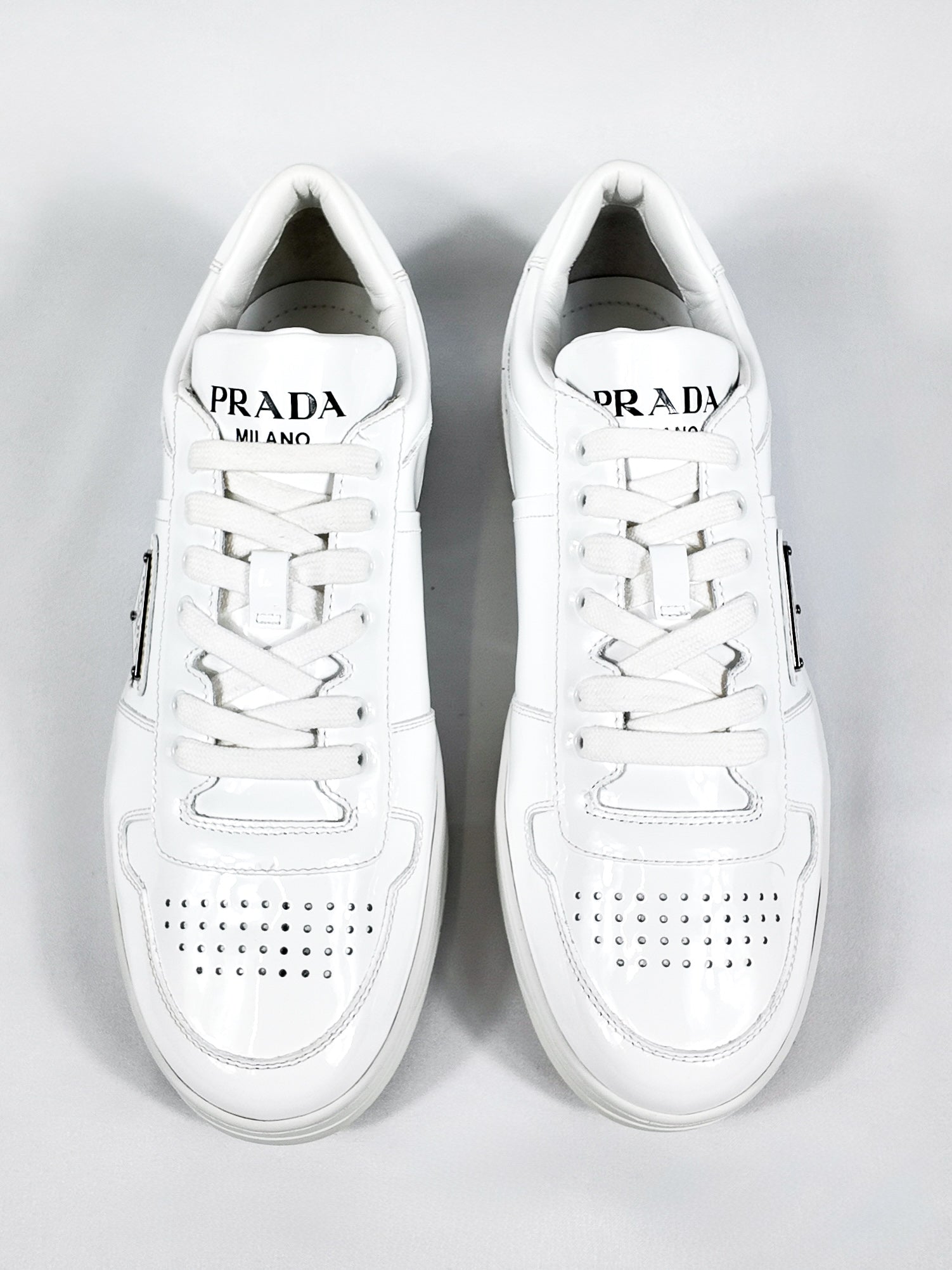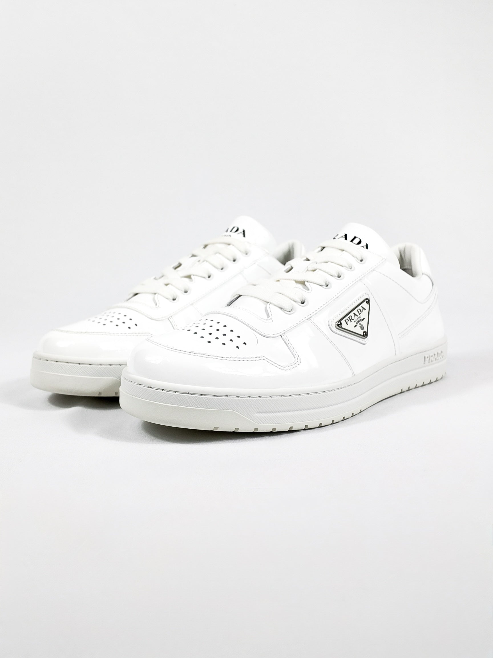 Step into luxury with these Prada Downtown Payton sneakers. Crafted in glossy white patent leather with the iconic enamel triangle logo on the side. Clean, contemporary, and effortlessly elevated, they’re the perfect mix of sporty silhouette and high-fashion finish. Brand new with box and dust bag included, these sneakers are made for those who want to stand out without saying a word.