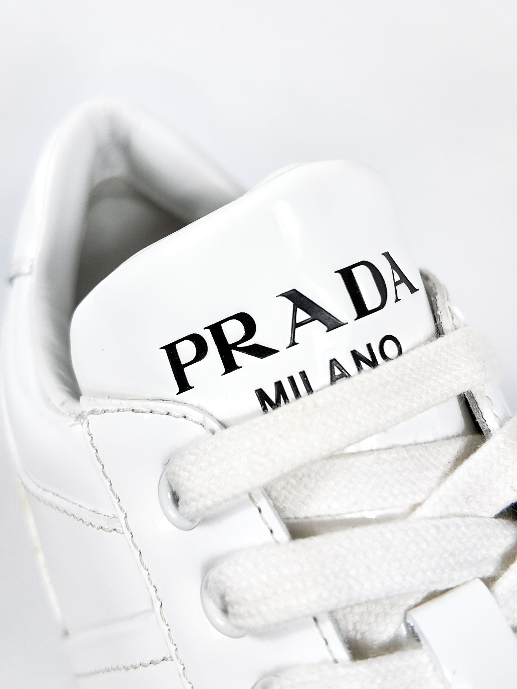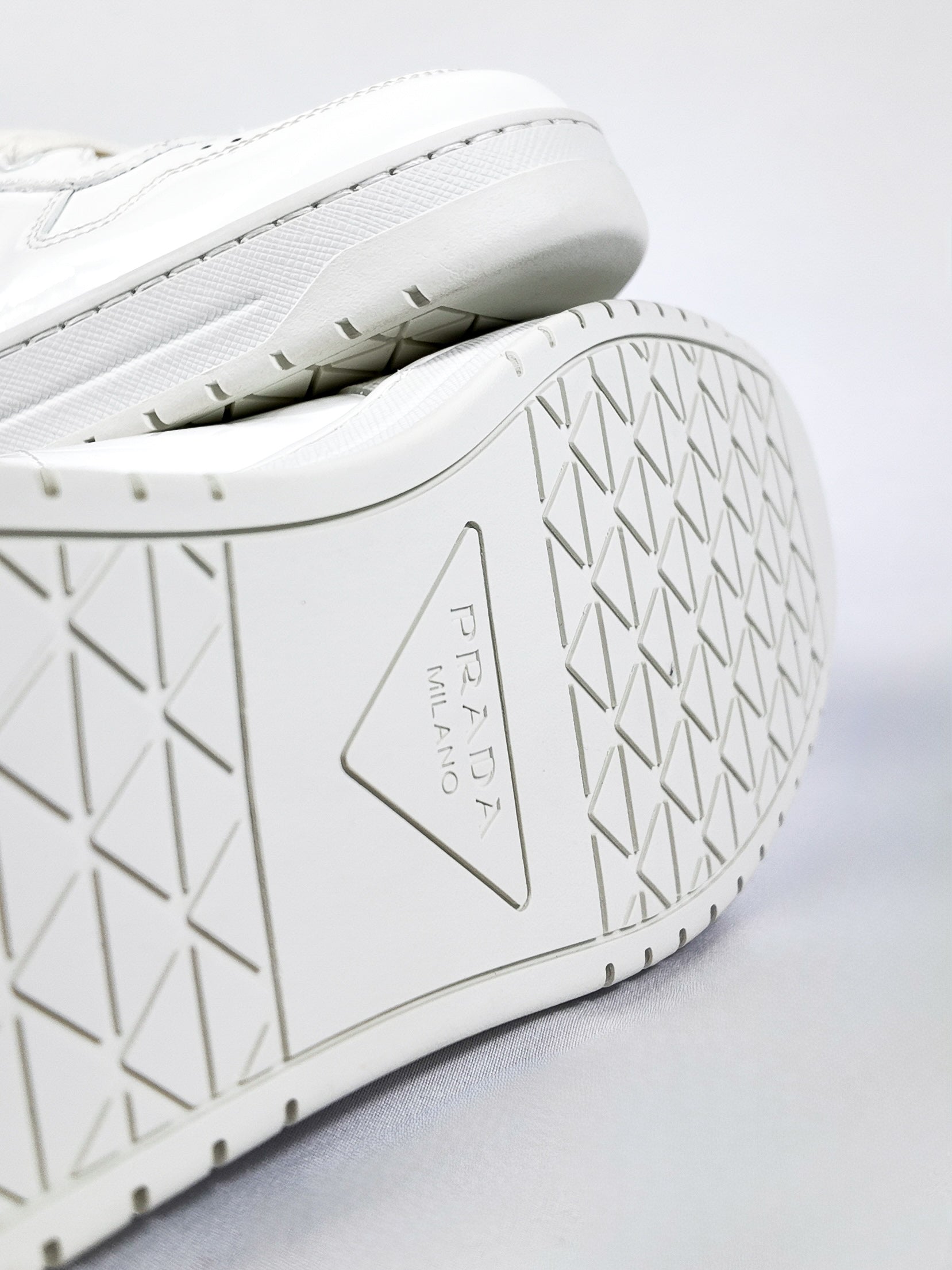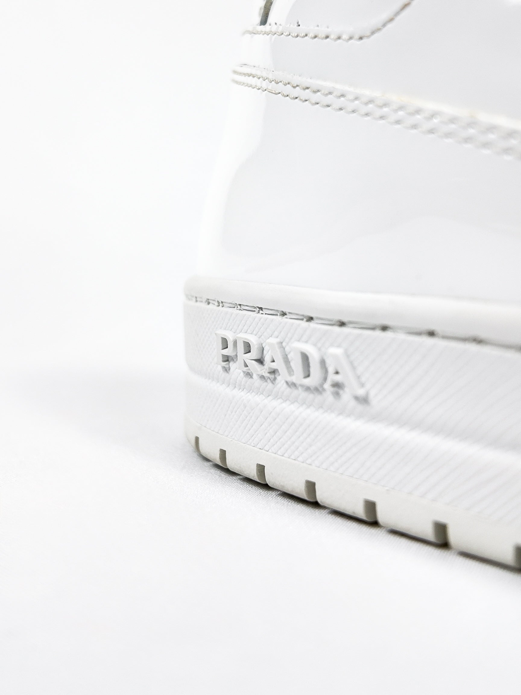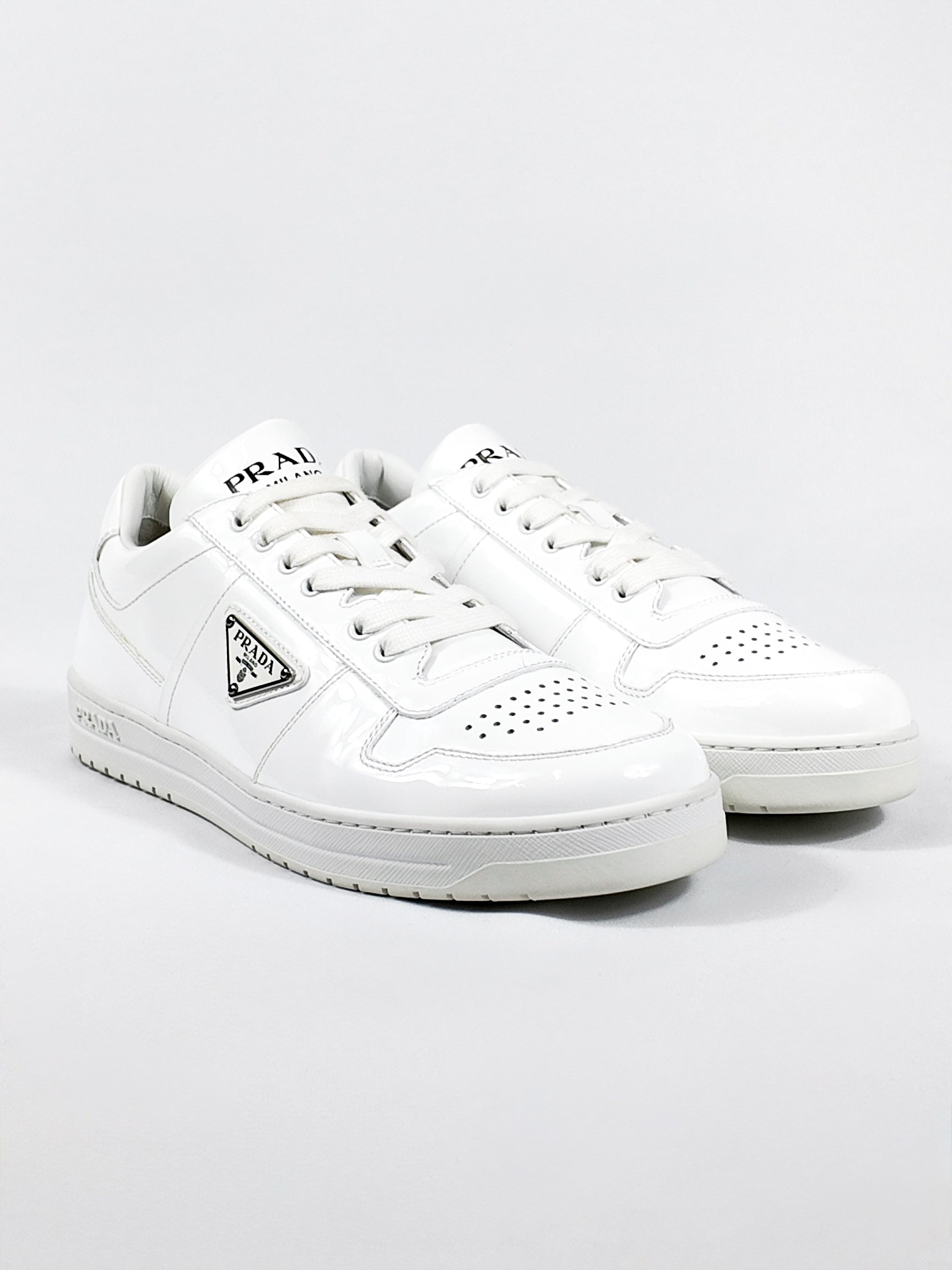 Step into luxury with these Prada Downtown Payton sneakers. Crafted in glossy white patent leather with the iconic enamel triangle logo on the side. Clean, contemporary, and effortlessly elevated, they’re the perfect mix of sporty silhouette and high-fashion finish. Brand new with box and dust bag included, these sneakers are made for those who want to stand out without saying a word.