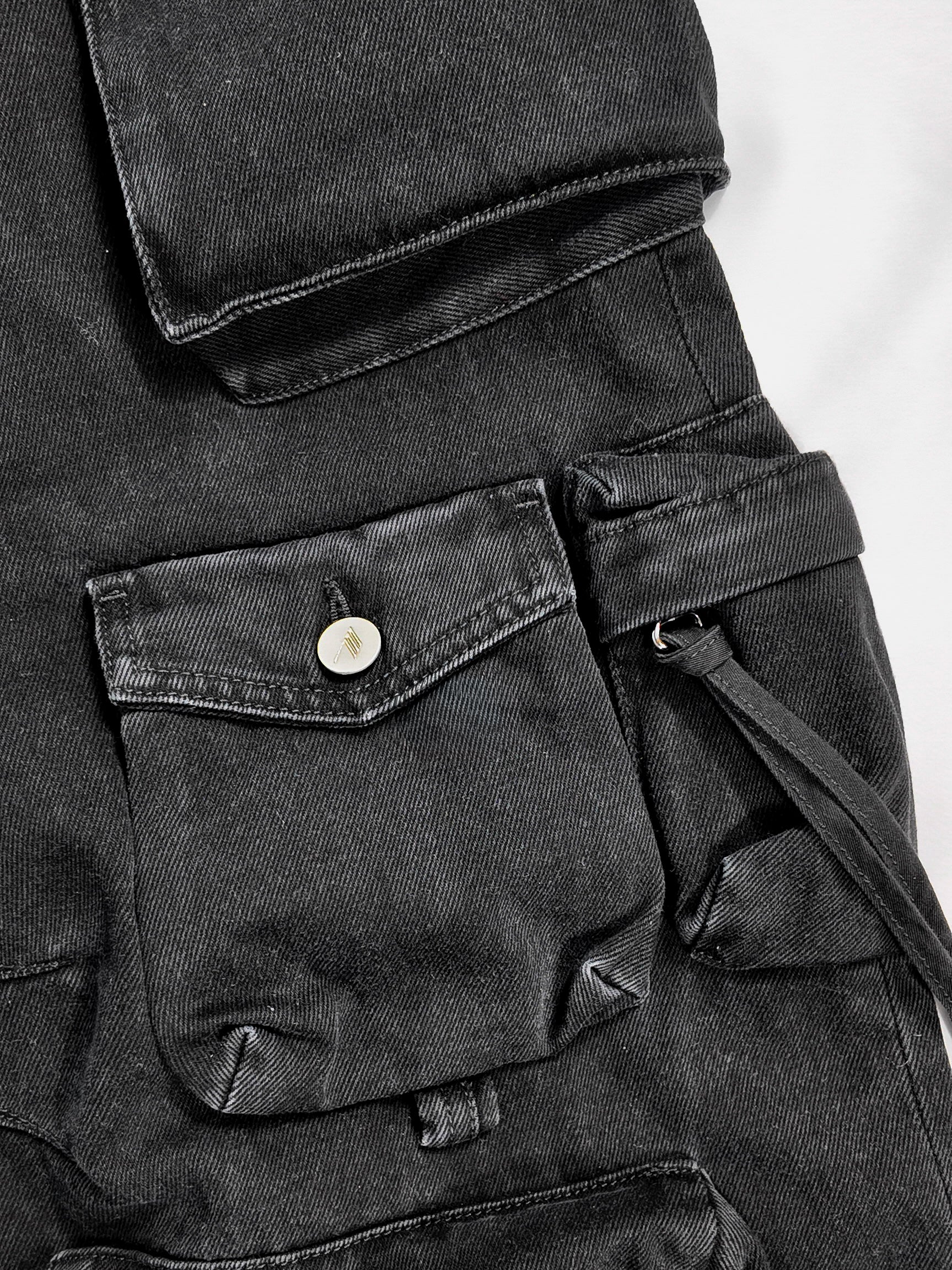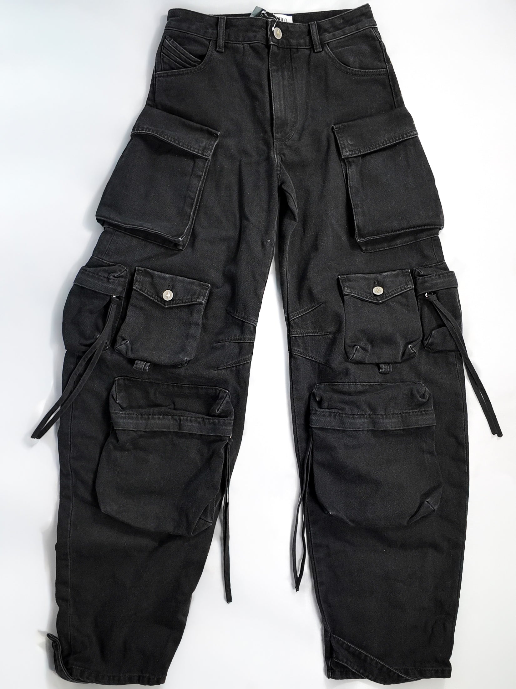 A bold statement piece from The Attico, the Fern cargo pants combine utilitarian design with effortless edge. Crafted from washed black denim, they feature a low-rise fit, oversized silhouette, and multiple functional pockets with drawstring and snap details. The perfect mix of structure and slouch for off-duty or elevated streetwear looks.