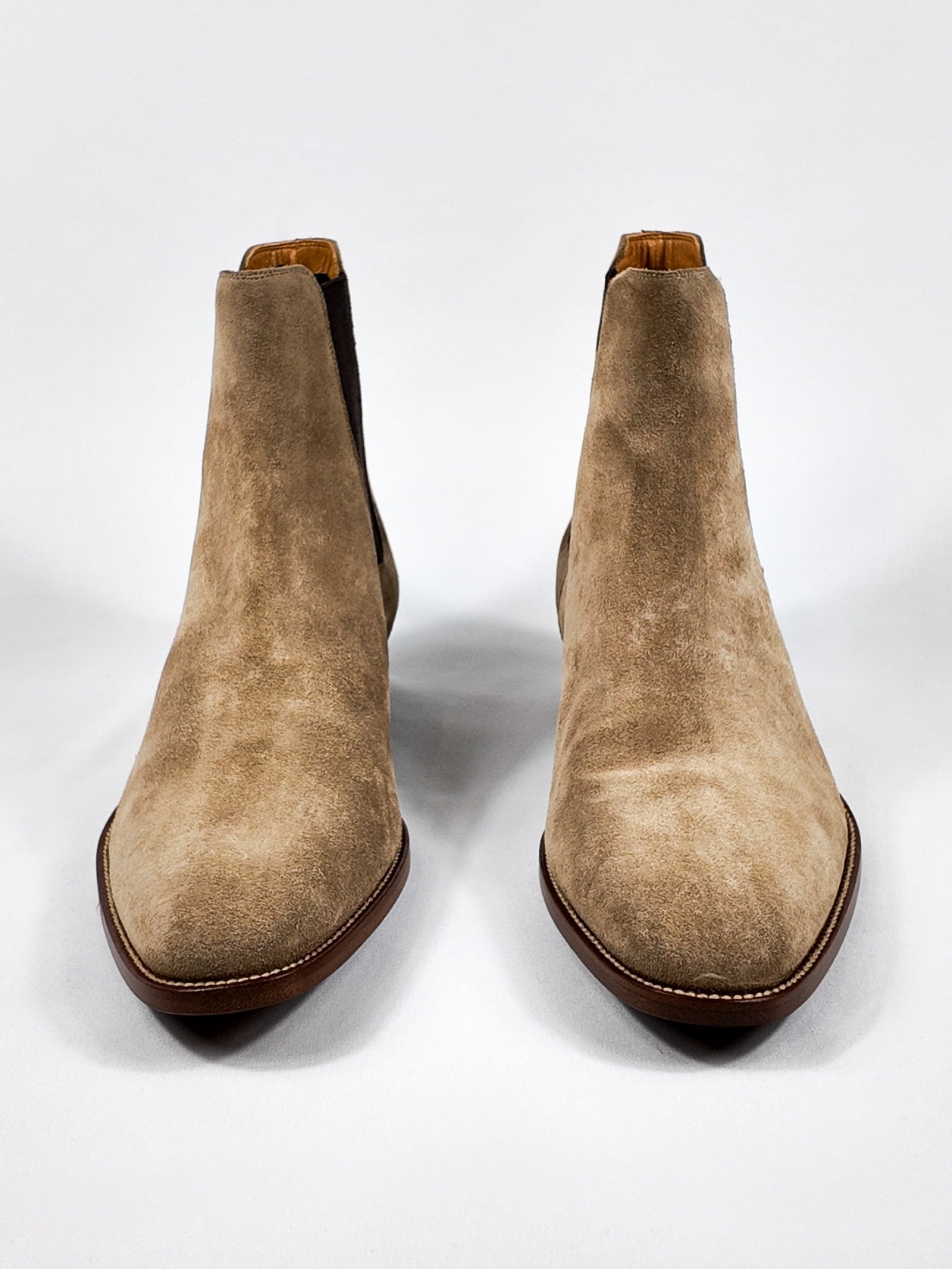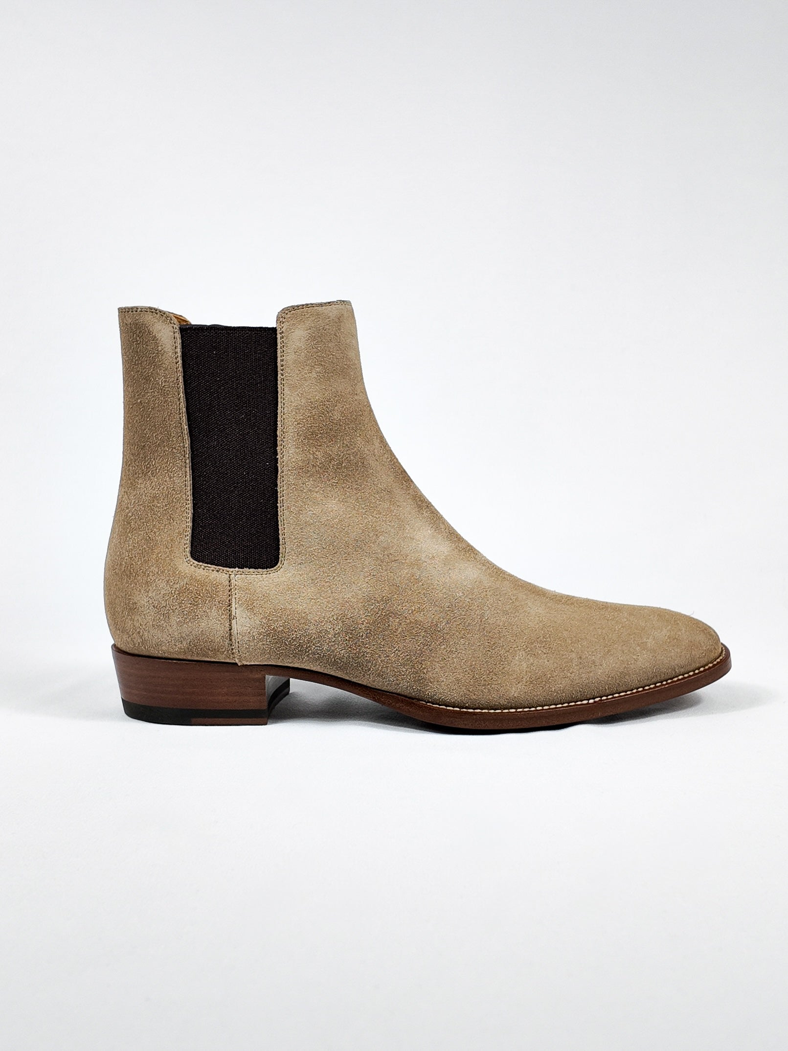 The ultimate staple for the modern wardrobe. These Saint Laurent Wyatt boots are crafted from soft beige suede with elastic side panels, and a slim, streamlined silhouette. Designed for understated luxury and everyday versatility. Brand new with tags, they’re the perfect finishing touch for both casual and elevated looks.